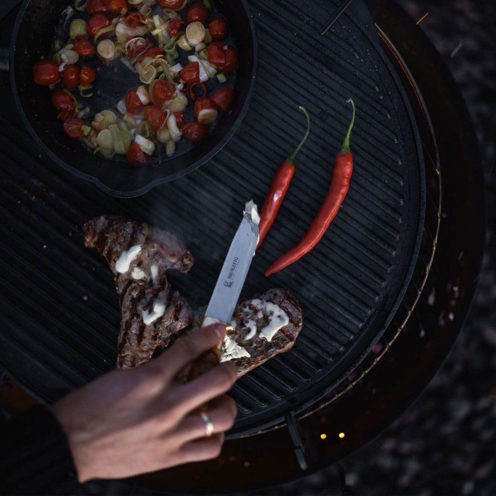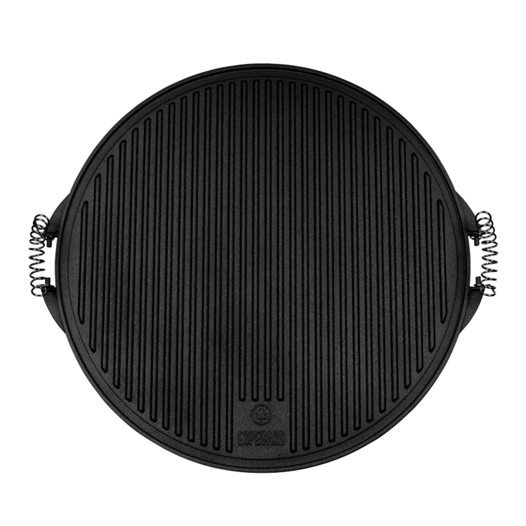 De Espegard Grillplaat is een robuuste gietijzeren grillplaat voor wie graag grilt boven open vuur. Past perfect op de Espegard Bålpanne Glo driepoot en kan ook direct boven andere open vuren worden gebruikt.