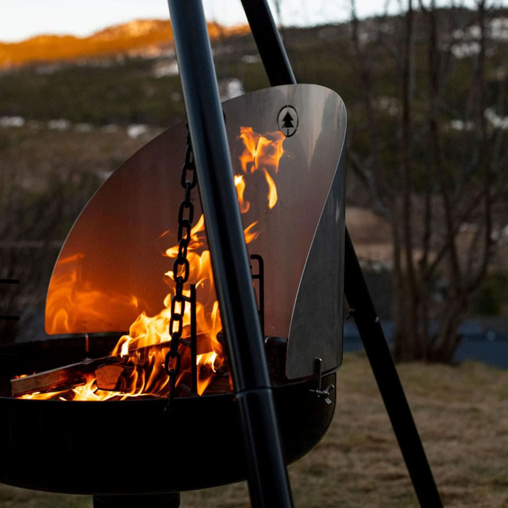 Dit wind- en hittescherm van Espegard is een onmisbaar accessoire voor de Bålpanne Glo. Het scherm beschermt het vuur tegen wind en helpt de warmte te concentreren aan één zijde van de vuurschaal. Zo blijft het vuur stabiel branden en geniet je van extra warmte en sfeer tijdens het buitenkoken.