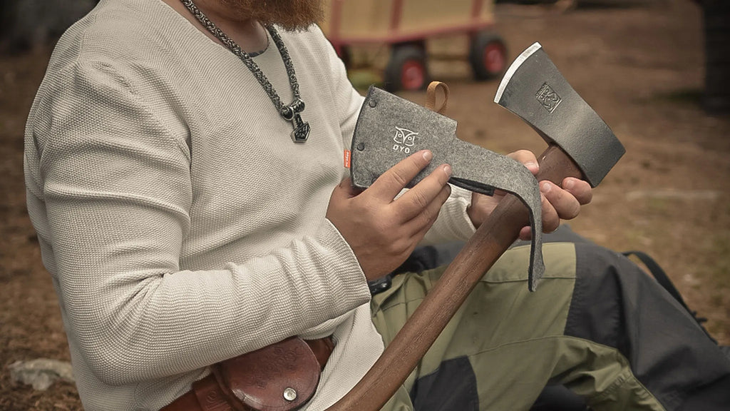 Om de bijl én de gebruiker te beschermen, raden we aan om na gebruik altijd de vilten bijlschede (Slire til øks) over het snijvlak te plaatsen. Het bijlblad kan indien nodig eenvoudig worden geslepen, zodat het altijd vlijmscherp blijft.