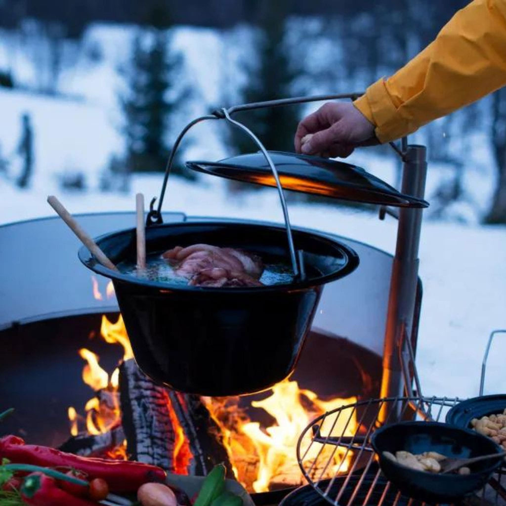 De Espegard geëmailleerde pan 6L is een echte klassieker voor buitenkoken boven open vuur. Ideaal voor het bereiden van stoofpotjes, soepen of een lekkere risotto. Dankzij het sterke stalen materiaal met een duurzame emaillelaag is de pan bestand tegen hoge temperaturen en eenvoudig schoon te maken.