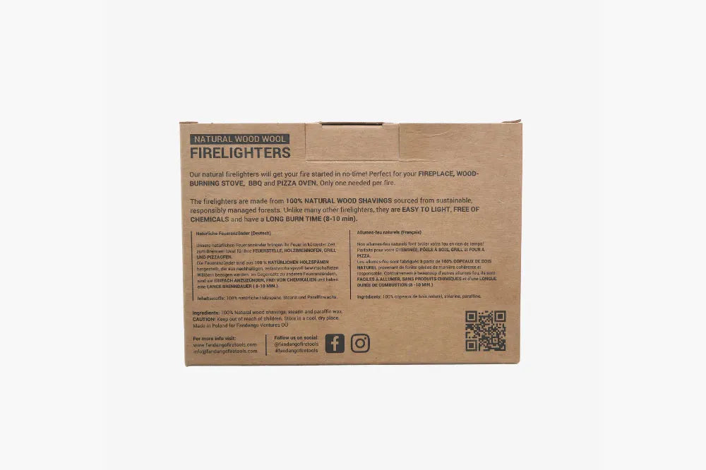 De aanmaaktondels zijn gemaakt van 100% natuurlijke houtkrullen uit ecologisch duurzame bosbouw. In tegenstelling tot veel andere aanmaakblokjes bevatten ze geen chemische toevoegingen, zijn ze geurloos en eenvoudig aan te steken.