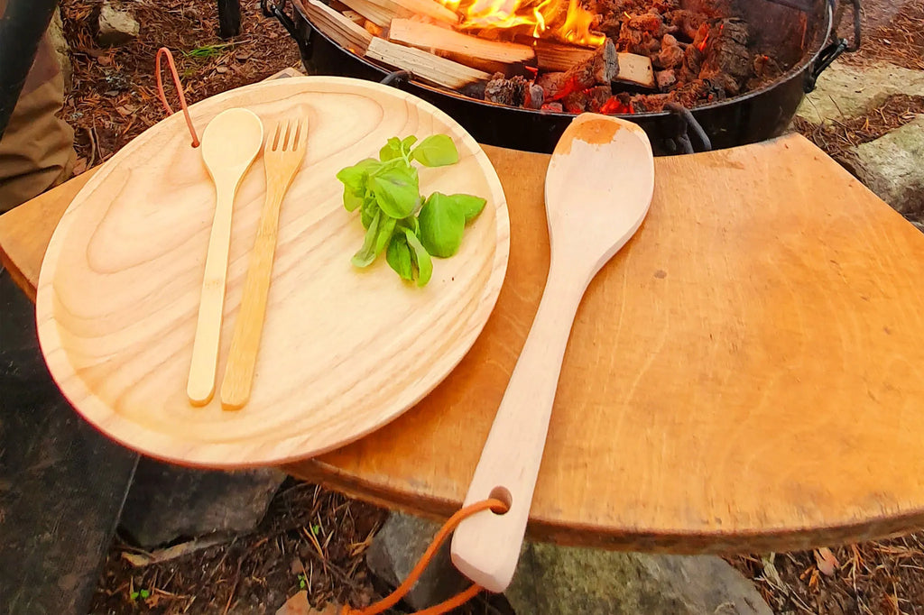 Een outdoor keuken is niet compleet zonder een stevige pollepel. Deze berkenhouten wandellepel is licht van gewicht en dankzij het leren koord hang je hem eenvoudig aan een tak, je rugzak of bij je kookplek.