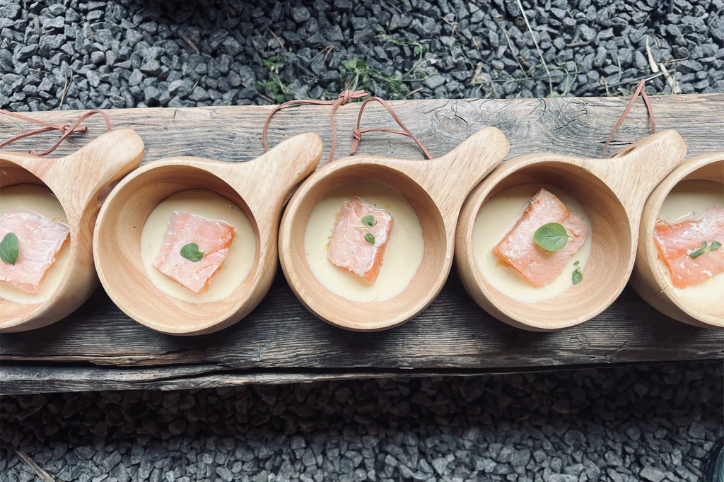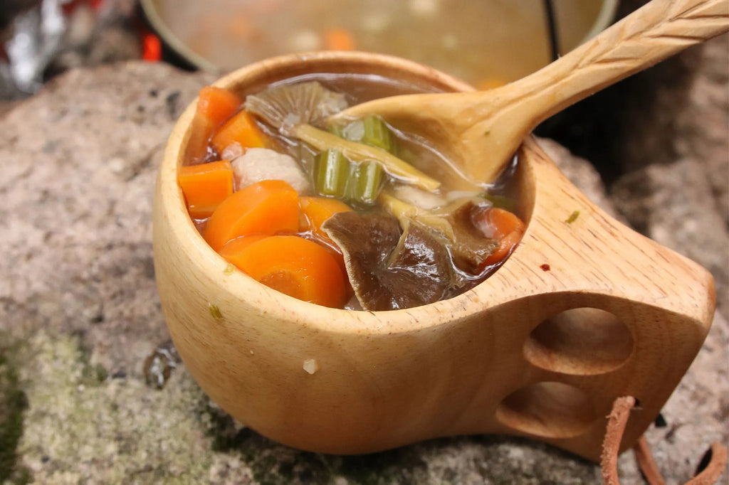 Het is heel lekker om koffie, thee, soep, water te drinken of om stoofvlees/pap met een lepel te eten uit deze klassieke Sami (Kuksa) mok van Brødrene Øyo. Deze rubberhouten* mok geeft een heerlijk outdoor beleving bij het wandelen. De houten Sami mok is voorzien van een lederen koord, hiermee bevestig je hem gemakkelijk aan je rugzak.