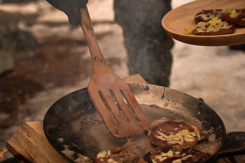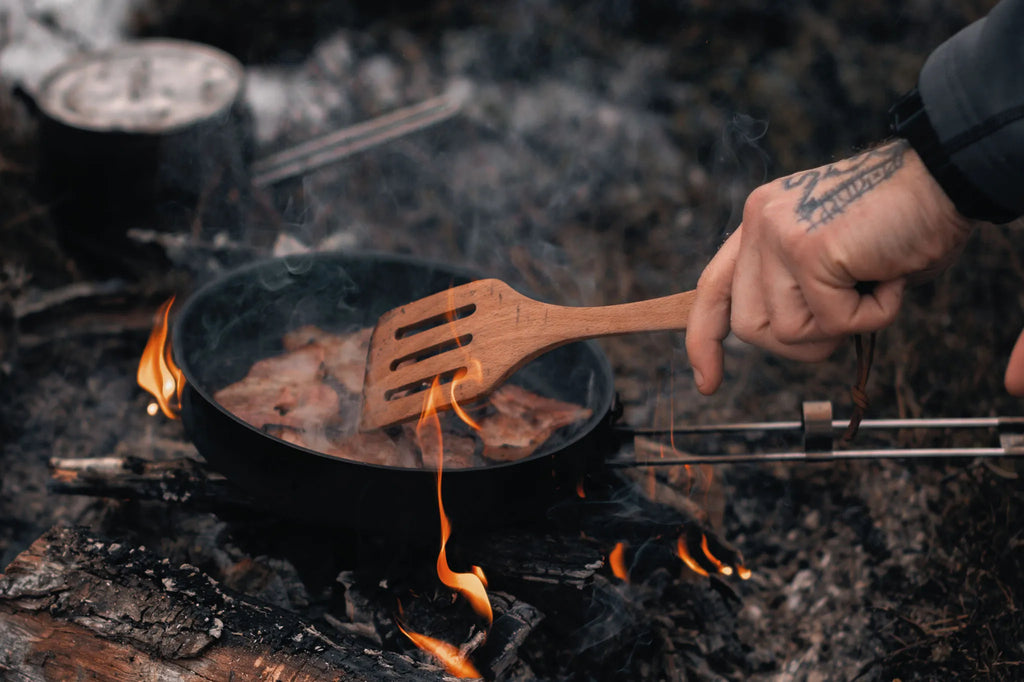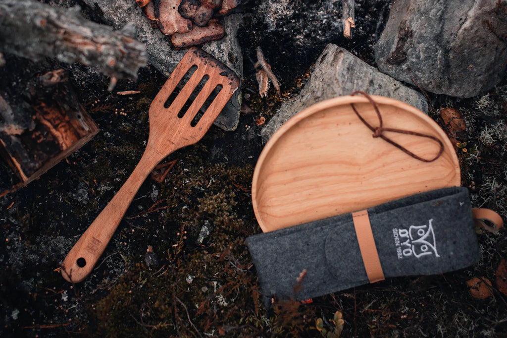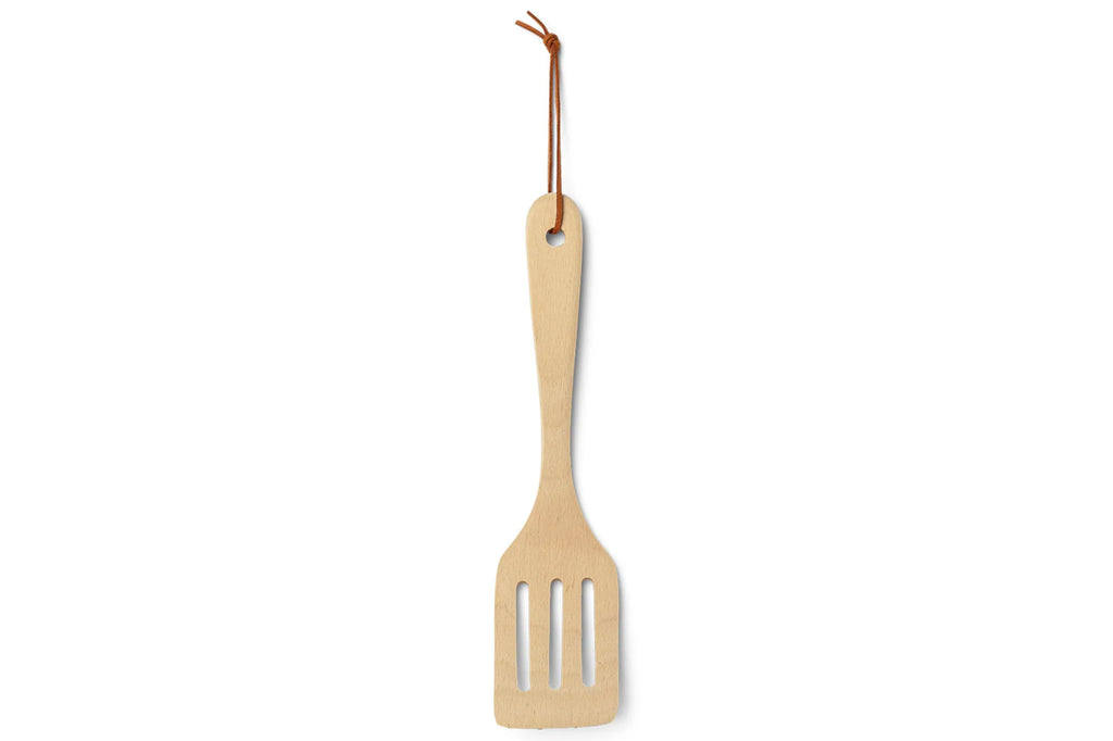 De milieuvriendelijke houten wandelspatel is onmisbaar wanneer het kampvuur brandt en je klaar bent om buiten te koken. Deze duurzame spatel van beukenhout is bestand tegen hoge temperaturen en dankzij de afgeronde hoeken ideaal voor gebruik in kampeerpannen en outdoor-kookpotten. Met het leren koord hang je hem eenvoudig op – altijd binnen handbereik tijdens je avontuur.