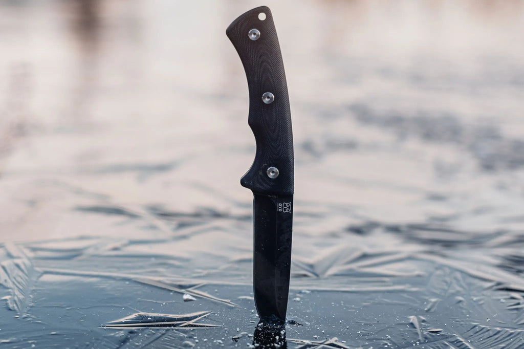 De Micarta handgreep ligt stevig en comfortabel in de hand, zelfs bij koude, natte of modderige omstandigheden. Micarta is een extreem sterk, slagvast materiaal dat bestaat uit geperst linnen, geïmpregneerd met epoxyhars – ideaal voor zwaar outdoorwerk.