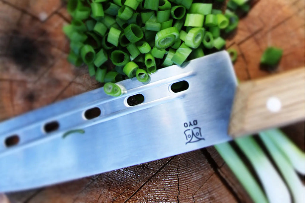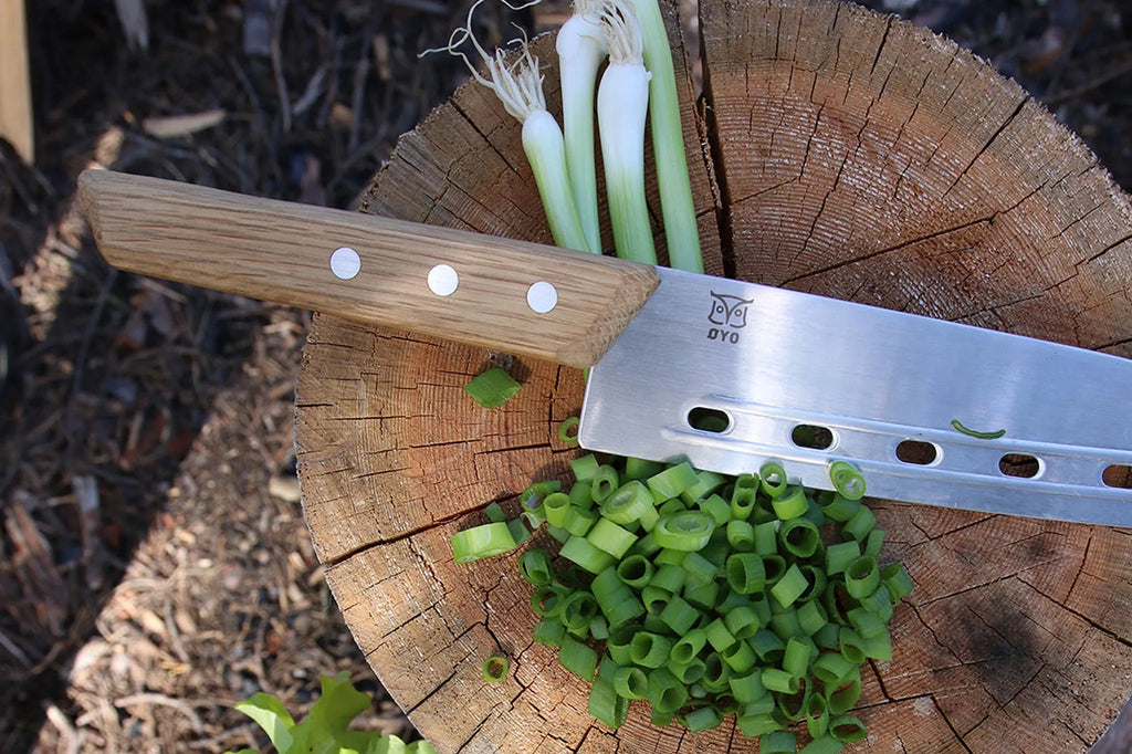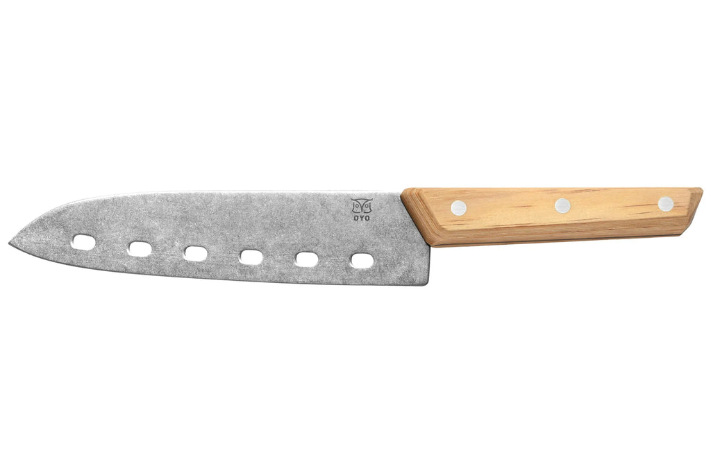 Dit Øyo allround Japanse koksmes is ontworpen voor optimale snijprestaties. De kenmerkende gaten in het lemmet voorkomen dat voedsel blijft kleven tijdens het snijden, doordat ze het vacuümeffect verminderen. Hierdoor snijd je soepeler, sneller en met meer precisie.