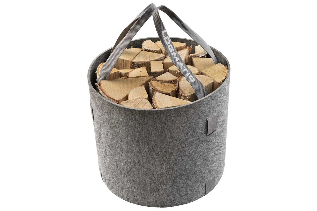 De Logmatic Vilten Mand is niet alleen bijzonder praktisch, maar ook een stijlvolle toevoeging aan elke ruimte. Dankzij de stevige houten onderplaat kun je het hout direct in de mand op maat kloven – ideaal voor efficiënt en netjes werken.