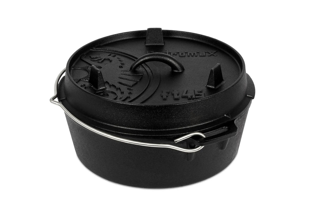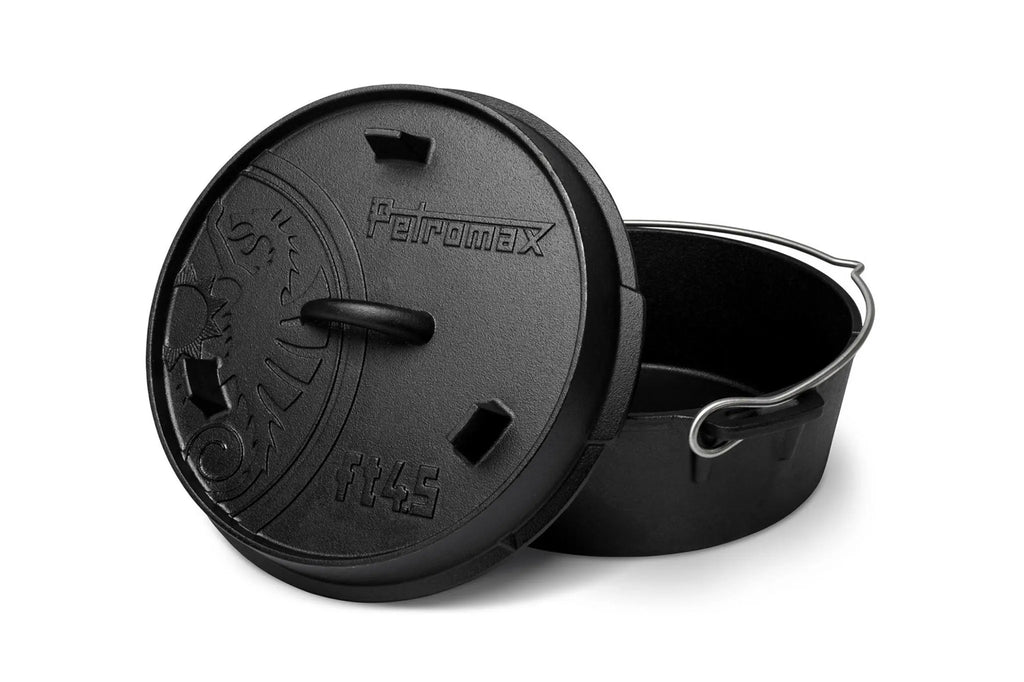 De Petromax Dutch Oven FT4.5 is een populair en veelzijdig formaat, ideaal voor buitenactiviteiten zoals kamperen, bushcraft of een picknick. Met deze Dutch Oven kook je eenvoudig voor 2 tot 5 personen, in of boven open vuur, bijvoorbeeld met een Bålpanne of op een Rocket Stove.
