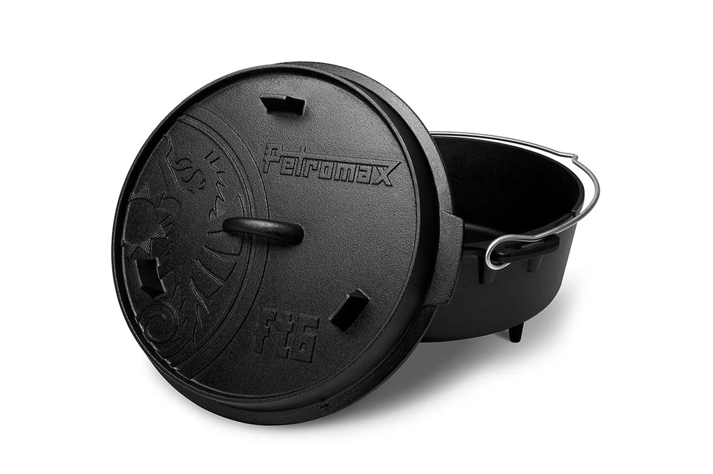 De Petromax Dutch Oven FT6 heeft dezelfde diameter als de traditionele FT9, maar is iets lager. Hierdoor heeft deze pan een inhoud van 5,5 liter, terwijl hij bijzonder veelzijdig blijft. Dankzij dit formaat past de FT6 perfect in een Petromax Atago en is hij ideaal voor uiteenlopende kooktoepassingen.