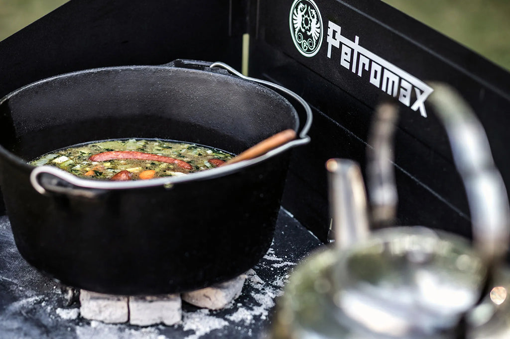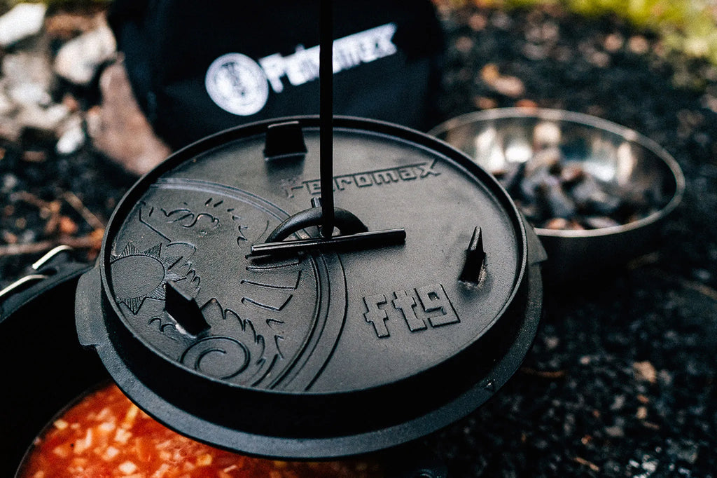 De Petromax Dutch Oven FT9 is een veelzijdige en robuuste gietijzeren pan, ideaal voor buitenactiviteiten zoals kamperen, bushcraft of een picknick. Met dit formaat kook je eenvoudig voor 8 tot 14 personen, perfect voor gezinnen, groepen en outdoor kookavonturen.