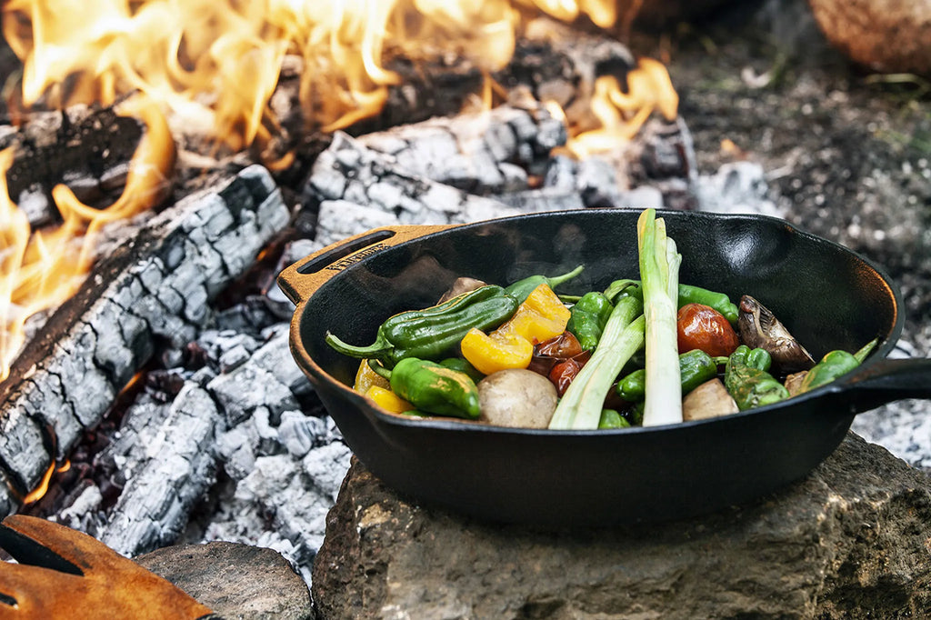 Je gebruikt de skillet moeiteloos boven open vuur, op een Atago, Rocket Stove, kamado of gewoon binnen op het fornuis of in de oven. Dankzij het massieve gietijzer wordt warmte uitstekend opgenomen en gelijkmatig verdeeld.