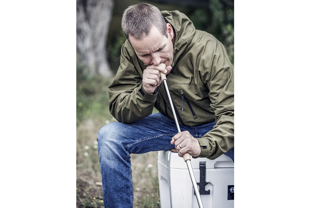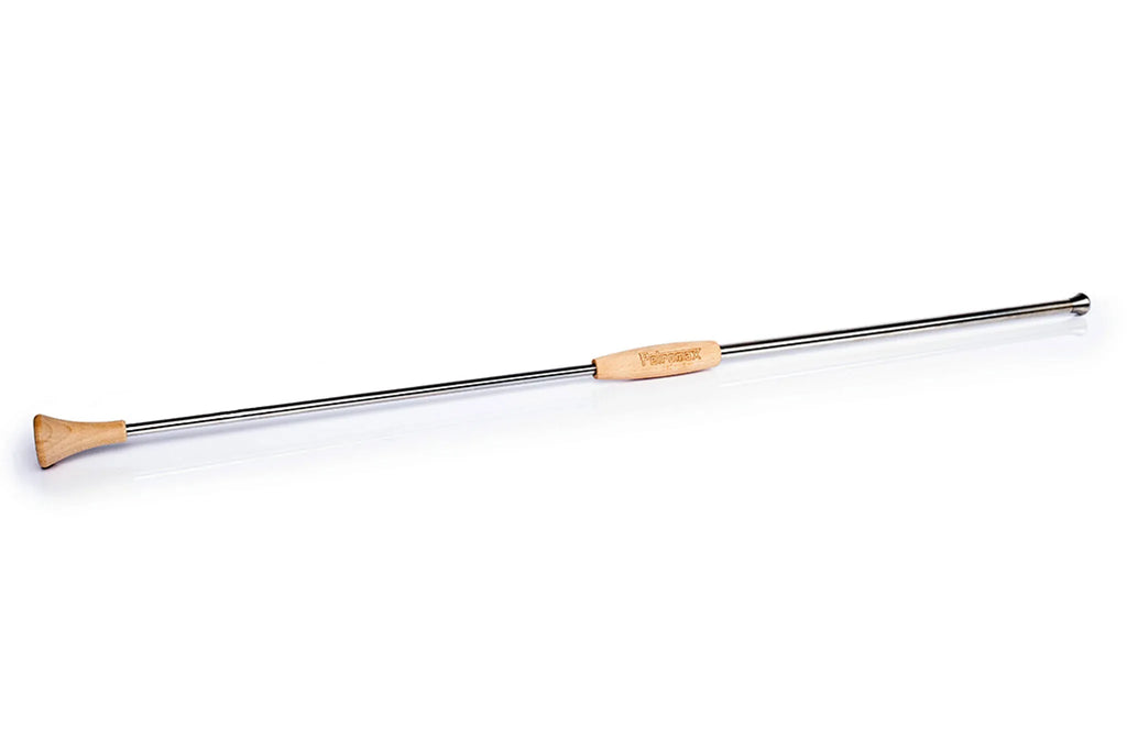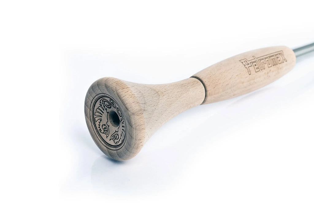 De blaaspijp is gemaakt van roestvrij staal en afgewerkt met een beukenhouten handvat en mondstuk. Dit zorgt niet alleen voor comfort en veilig gebruik, maar geeft de blaaspijp ook een stijlvolle, robuuste uitstraling.