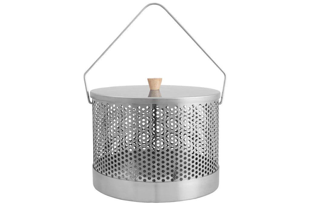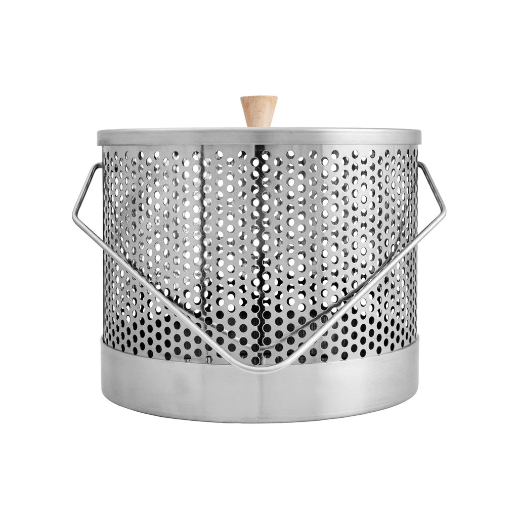De pan is gemaakt van duurzaam, zuurbestendig roestvrij staal en voorzien van een stevig ophanghengsel waarmee u de pan eenvoudig boven het vuur kunt hangen. Het deksel met houten knop zorgt voor veilig en comfortabel gebruik, ook bij hoge temperaturen.