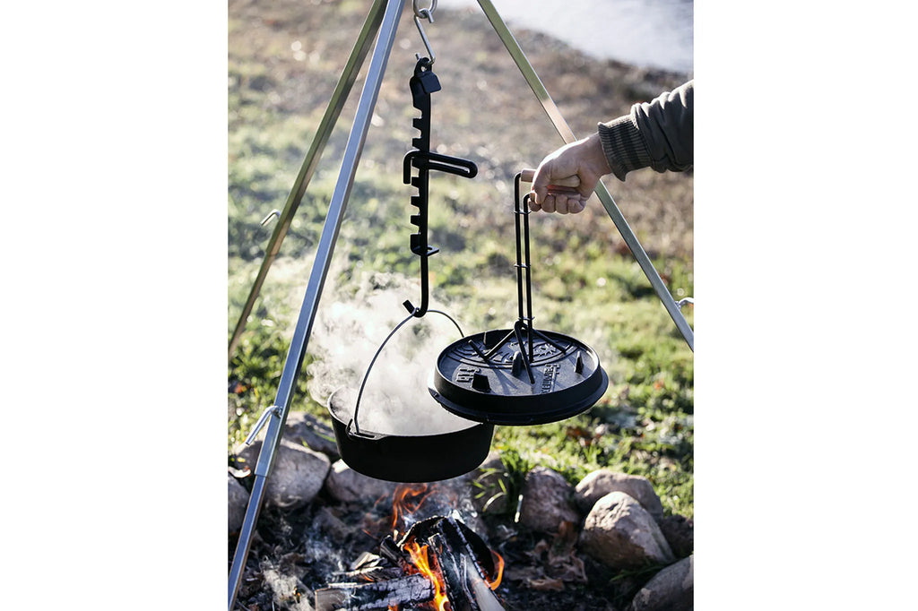 Met een effectieve werkafstand van circa 33 cm houd je voldoende afstand tot de hete kookplaat of het open vuur. Dit zorgt voor extra veiligheid en comfort tijdens het buitenkoken of werken met een Dutch Oven.