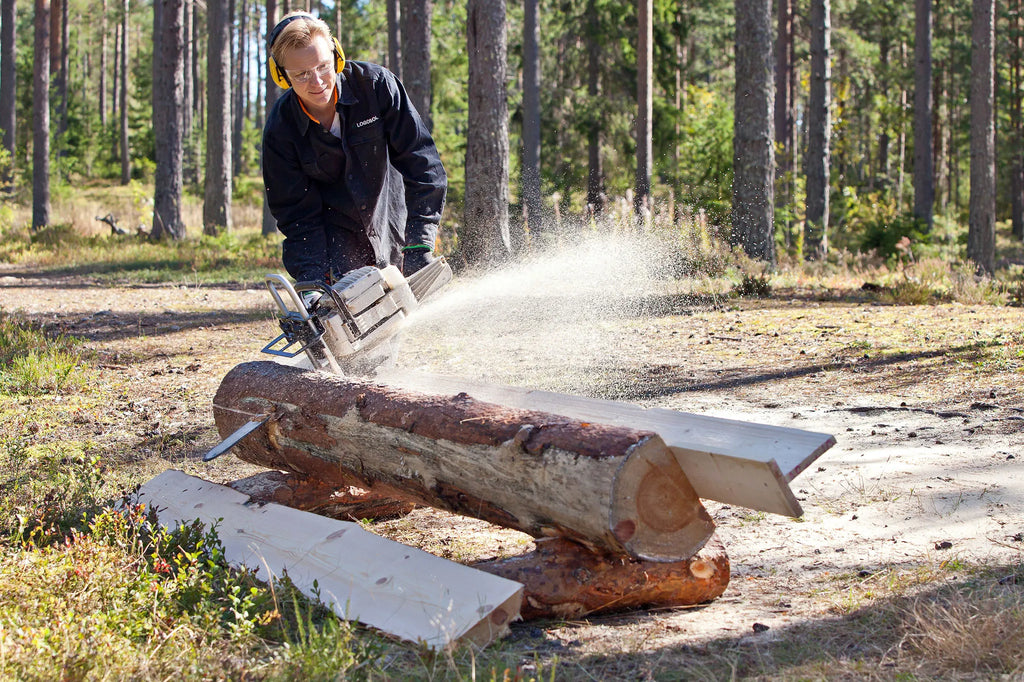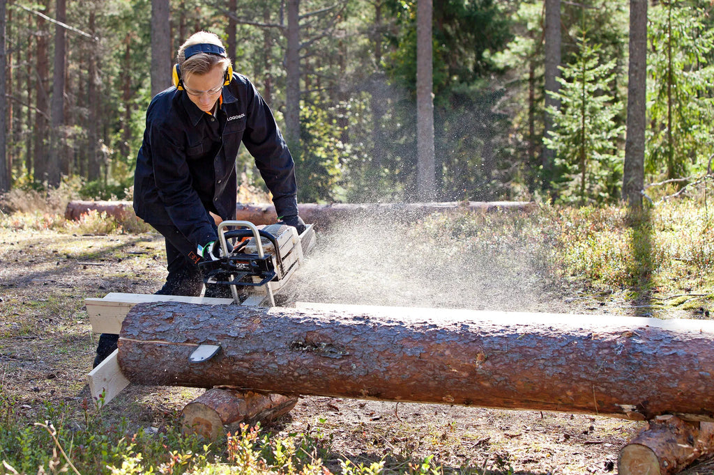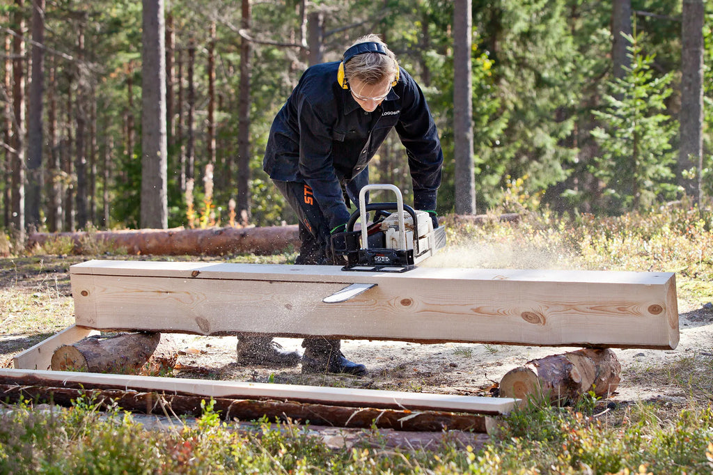 Gebruik de LOGOSOL Smart Timberjig in combinatie met een professionele kettingzaag van Stihl, Husqvarna of Dolmar/Makita. Je zaag moet uitgerust zijn met twee bar bouten en een krachtige motor van minstens 3,3 kW (4,4 pk).