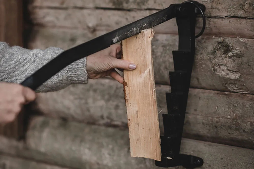 De klover is gemaakt van hoogwaardig verzinkt gietijzer (dus geen roest) en bestaat uit een scherp mes en een trapvormig element. Dankzij de combinatie van het mes en de hefboomwerking maak je snel én veilig kleine aanmaakhoutjes voor een comfortabel vuur.