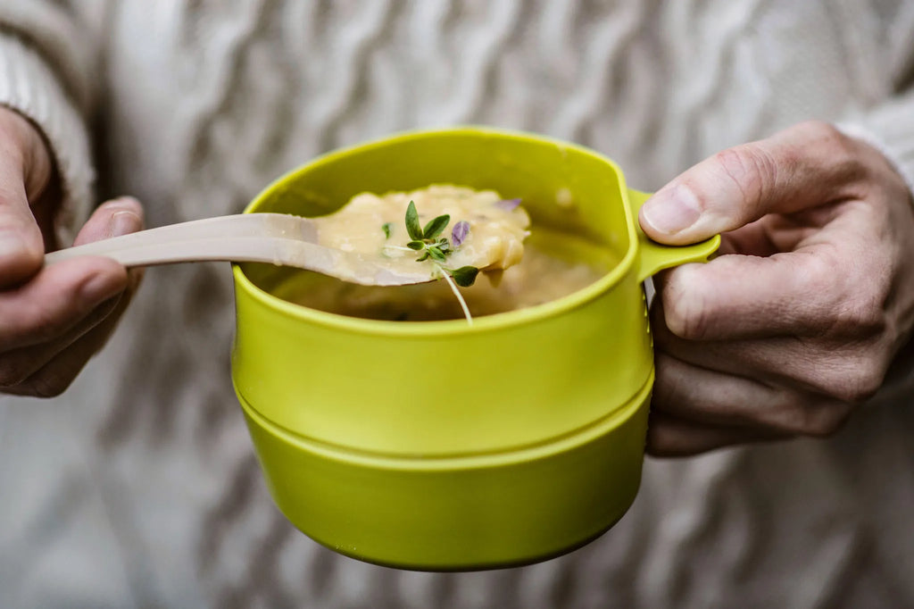 De Fold-A-Cup Big klapt moeiteloos open van een compacte, platte vorm tot een stevige mok of kom. Dankzij het slimme scharnierdesign druppelt hij niet na, blijft hij vormvast en is hij direct klaar voor gebruik. Gevouwen is hij slechts 4 cm hoog, waardoor hij nauwelijks ruimte inneemt in je uitrusting.